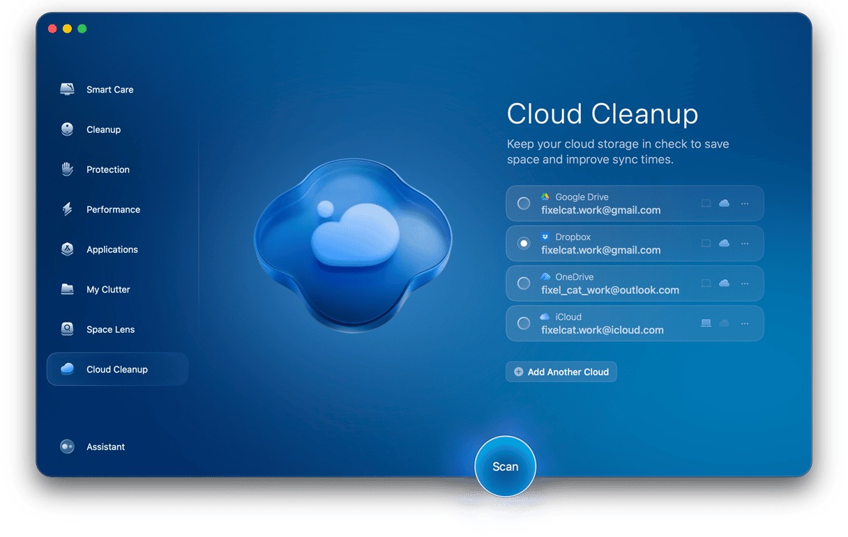 But first, declutter your cloud storage, so there's enough space for a backup. We suggest removing large files you no longer need, and the easiest way to do it is to use CleanMyMac and its Cloud Cleanup feature. Here's how it works: