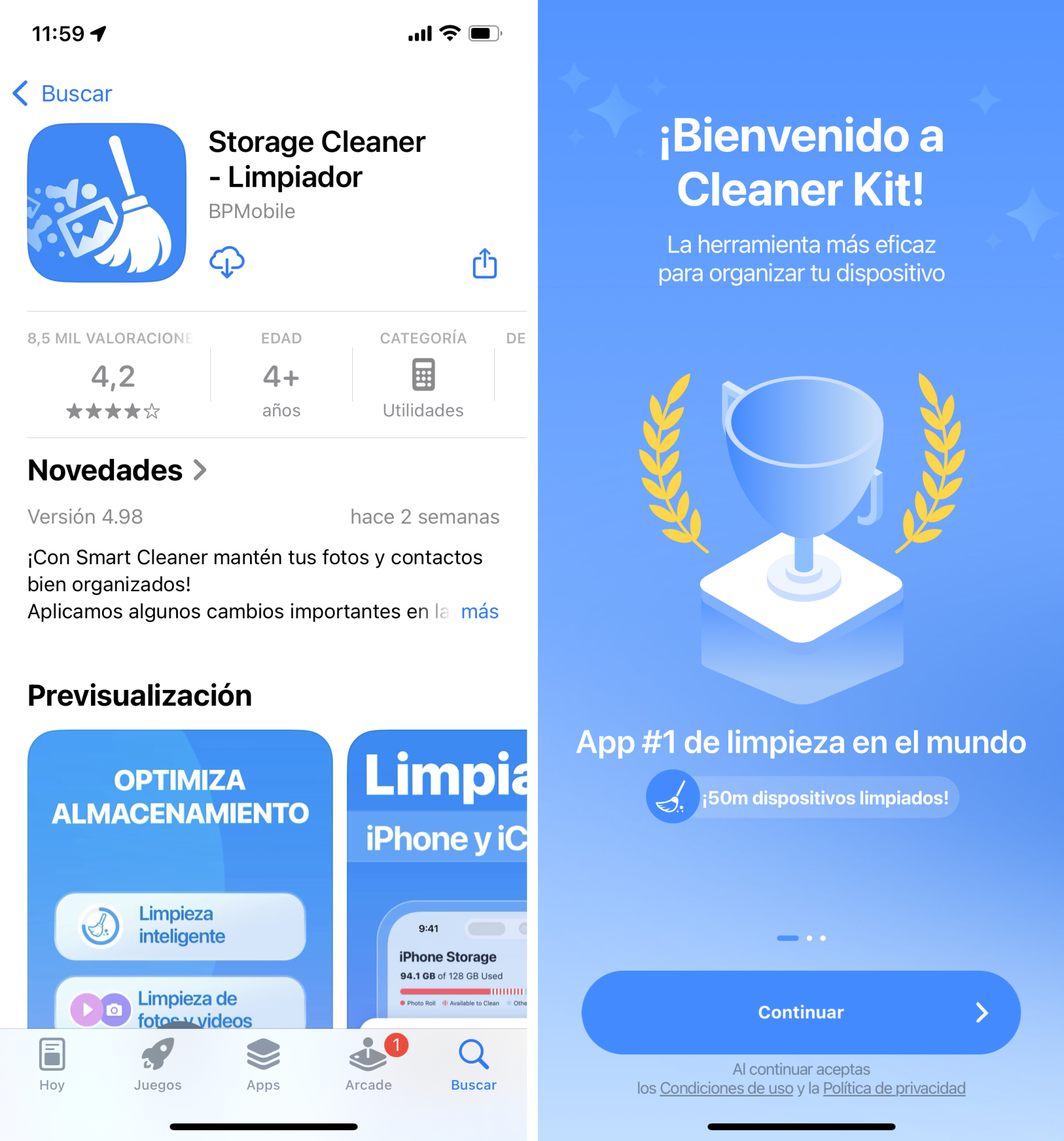 Es una app muy fácil de usar y no hace falta registrarse ni facilitar datos de contacto. Y cumple exactamente con lo que promete: recuperar espacio en el iPhone. Por tanto, es perfecta para quienes busquen una app de limpieza sin complicaciones.