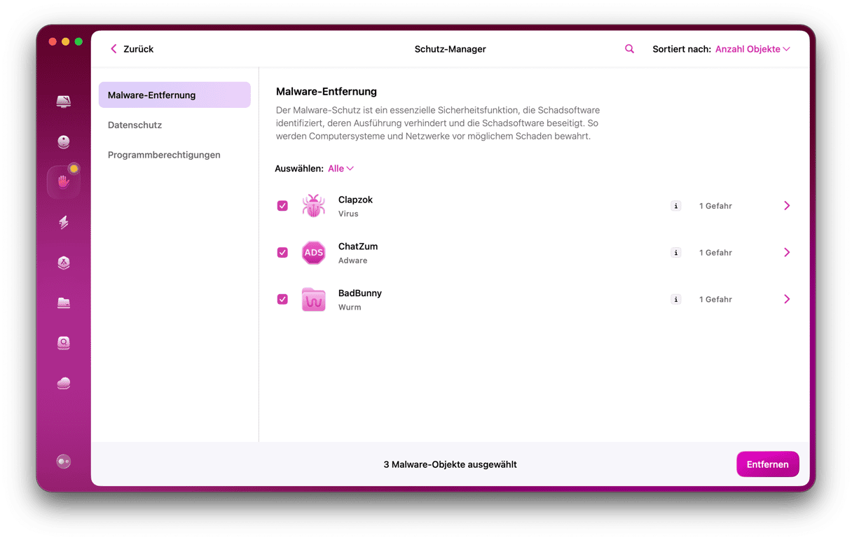 Es ist durchaus möglich, dass Sie als Mac-Benutzer Ihr ganzes Leben lang von Malware verschont bleiben. Es kann aber auch passieren, dass ein fieses Stück Spyware, Adware und etwas noch Schlimmeres Ihren Mac gleichzeitig angreift. Und wenn Sie Ihren Mac für die Arbeit verwenden, kann das zu ernsthaften Problemen führen. Warum also das Risiko eingehen?