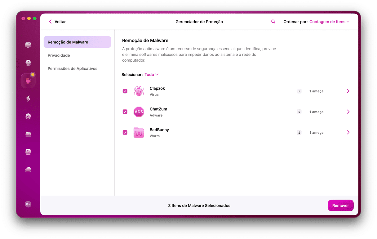Embora não seja primariamente uma ferramenta antimalware, o CleanMyMac tem um utilitário de proteção poderoso em seu arsenal. Basta clicar em um botão para que o CleanMyMac analise o Mac e compare o que ele encontra com um banco de dados de malwares conhecidos. Caso algo apareça, você só precisa clicar mais uma vez ou ir mais a fundo e ver o que foi encontrado. Você também pode configuráâlo para analisar o Mac em segundo plano automaticamente, alertando você caso detecte um malware.
