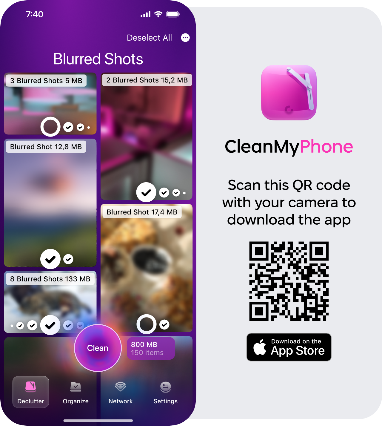 If your iPhone is running out of space, you might experience crashing and freezing, and when you're trying to take a photo, it's so annoying. To prevent this from happening, you can use a tool like the CleanMy®Phone app to categorize and organize your photos; here's how: