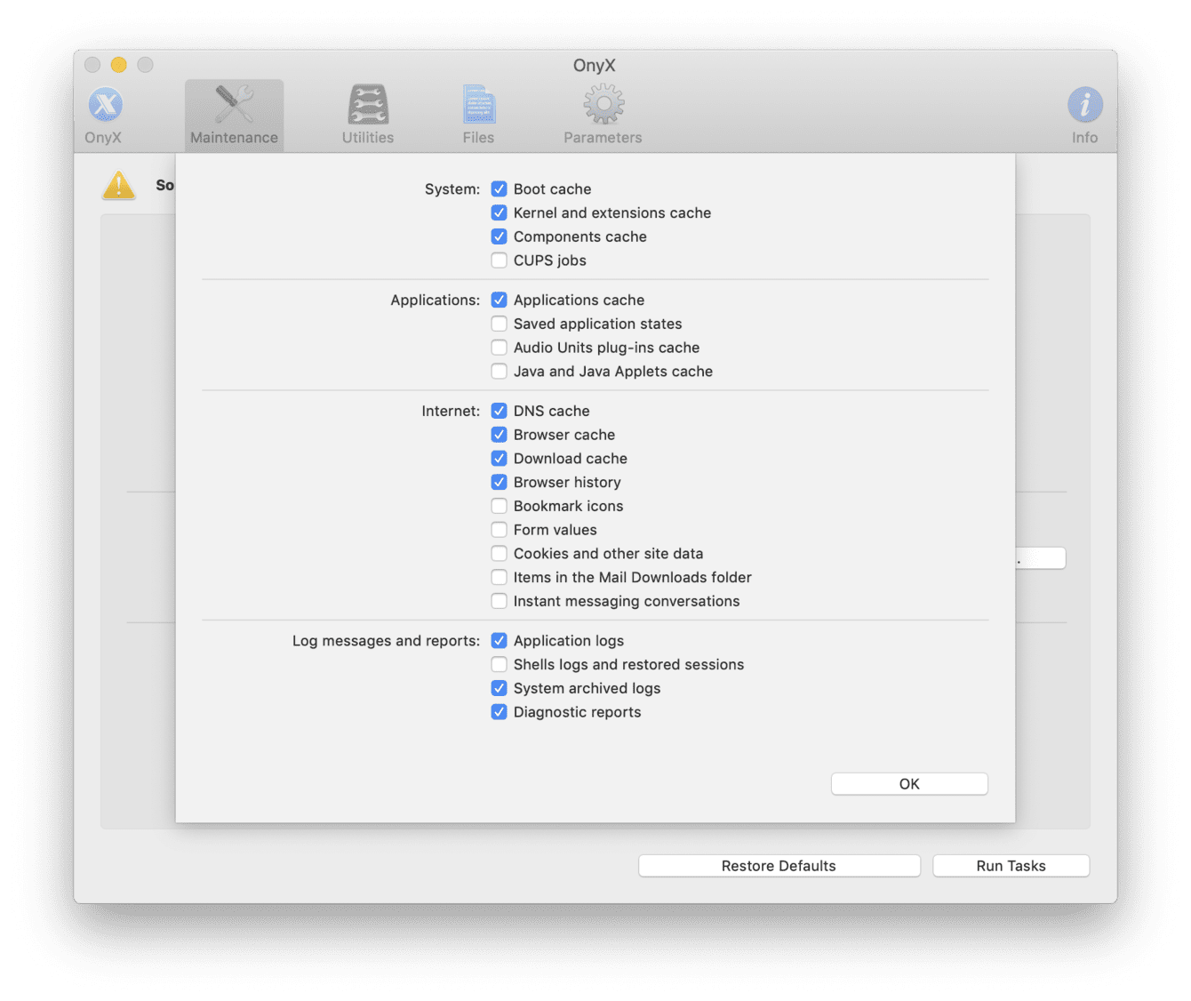 If you tick enough tick boxes, you can delete user cache files, unnecessary system logs, application support files. But if you tick the wrong box, prepare to be screwed — and with Onyx’s overloaded interface, the misfires are possible.