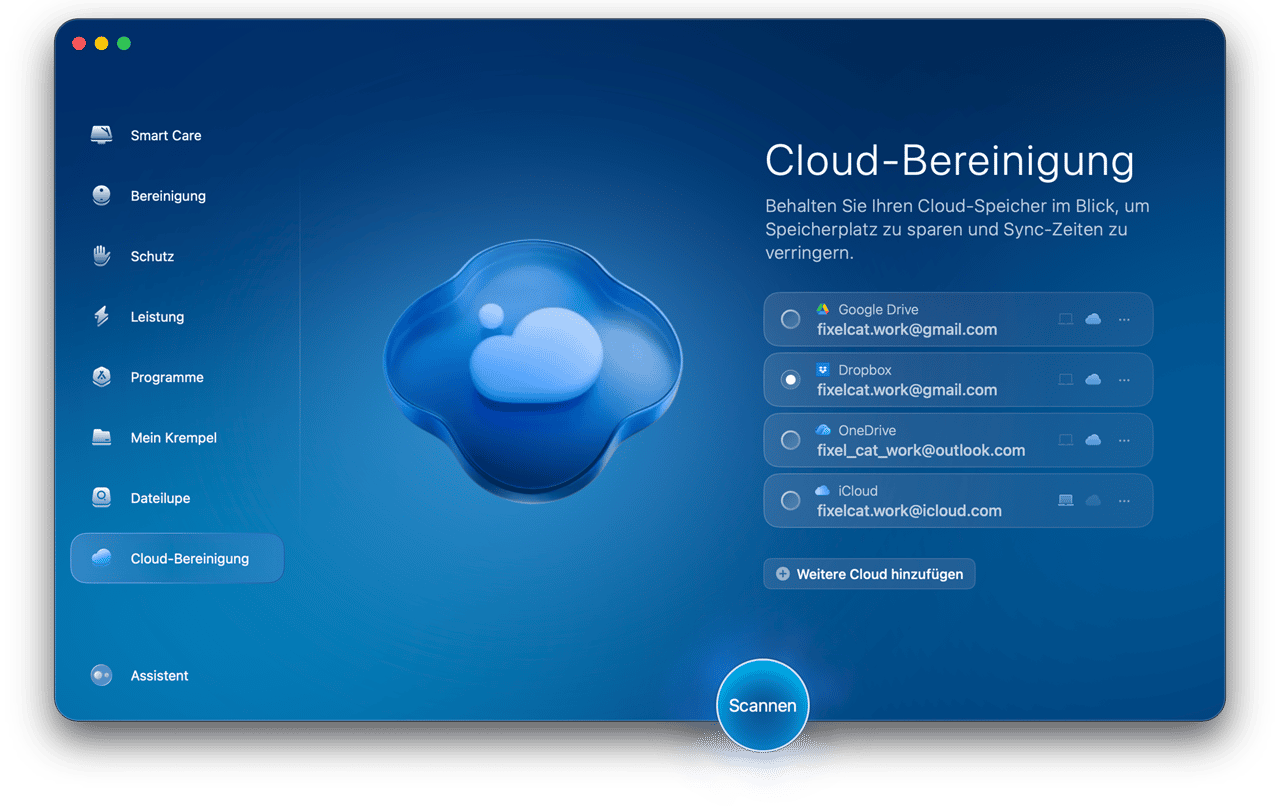 Sie zahlen für Cloud-Speicher, den Sie kaum nutzen? Cloud-Bereinigung zeigt Ihnen, was Ihre Cloud-Accounts füllt – und ermöglicht es Ihnen, im Handumdrehen Platz zu schaffen.