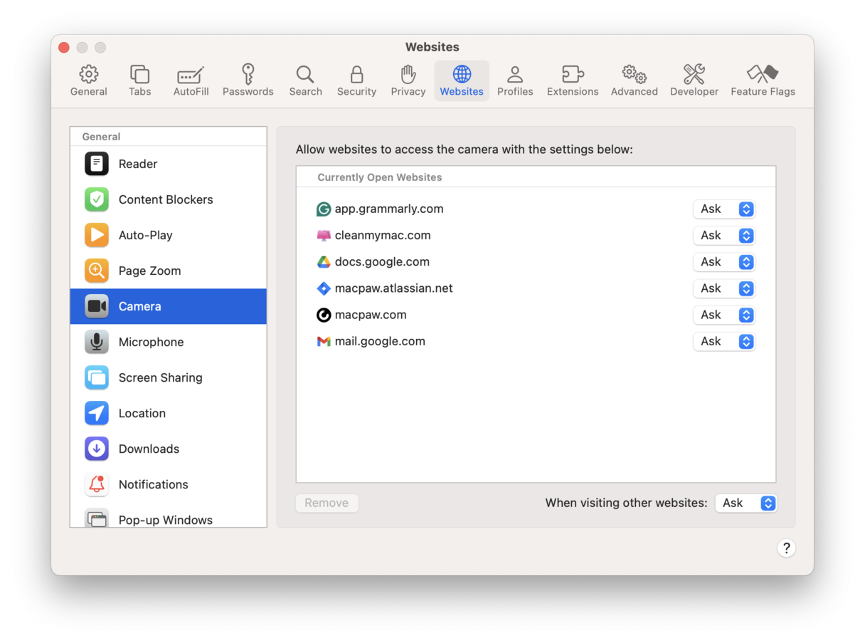 Here is another alternative for you to check out — go to browser settings and double-check if any websites can access your camera. Follow these steps for your browser: