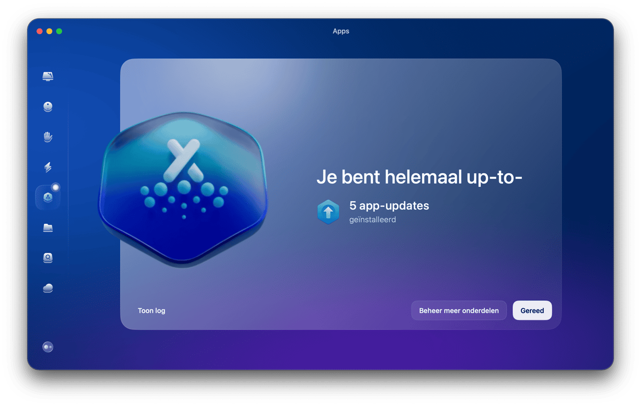 Eén centraal punt om al je apps te beheren. Verwijder apps en hun restjes en blijf op de hoogte van elke cruciale update.