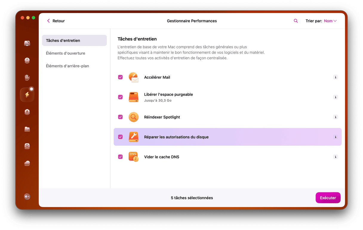 Sélectionnez les tâches d'entretien que vous souhaitez exécuter, et quittez les éléments d'ouverture et d'arrière-plan qui sont peut-être ouverts sans que vous ne le sachiez.