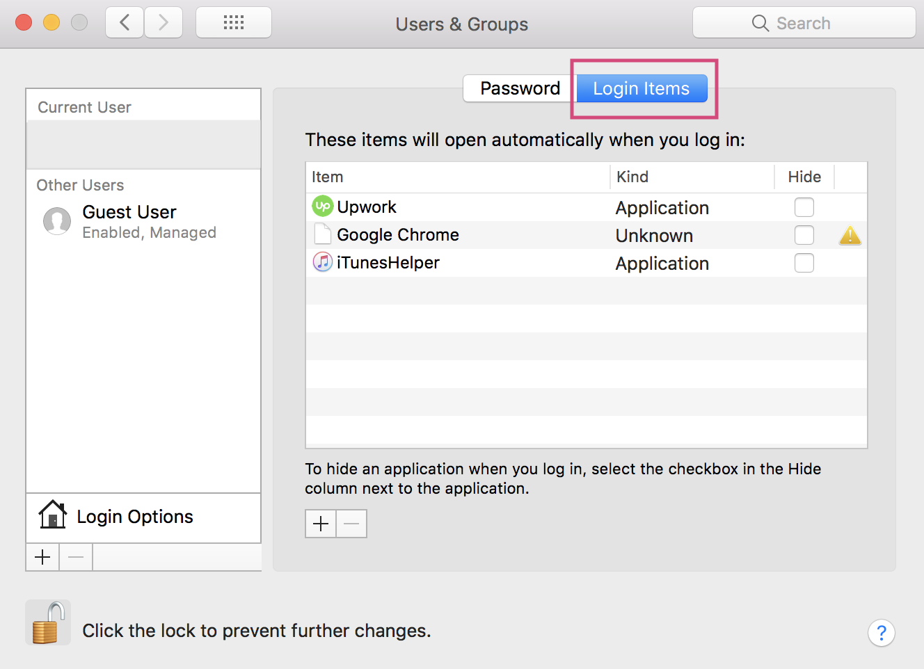 Select the Login Items tab.