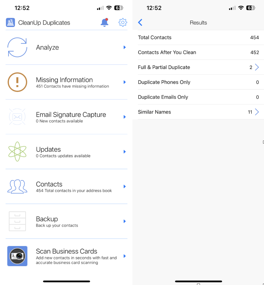 Pros: The Similar Contacts tool is careful and smart. Best for people who want one app that also tidies photos, files, and app clutter while they're at it.