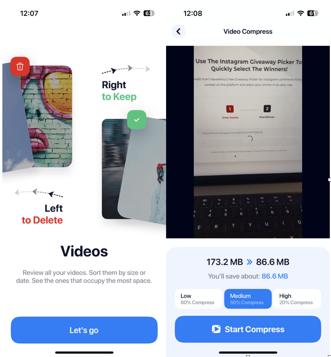 The core photo cleanup tools are still front and centre: you can swipe through duplicate shots, blurry snaps, screen recordings, and lookalike videos. It doesn't upload anything to the cloud, and all deletions require user approval, which gave me more peace of mind while testing.