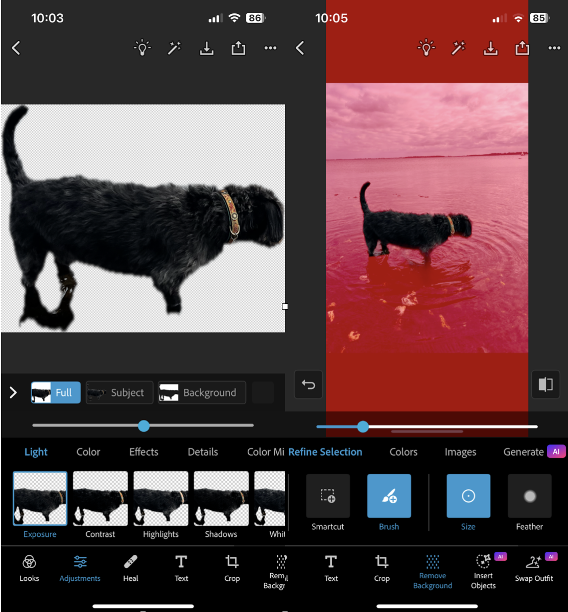 If the first pass smears texture, undo and try two or three smaller passes. On trickier images, Photoshop for iPhone with Firefly-powered generative fill is shockingly good at continuing patterns like brick and waves.