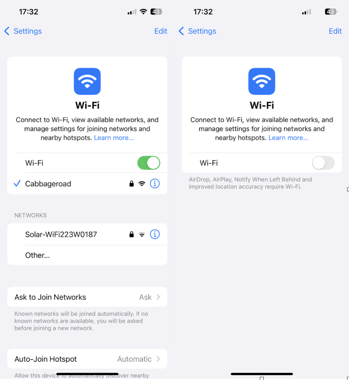 1. Turn Wi-Fi off, then back on.
