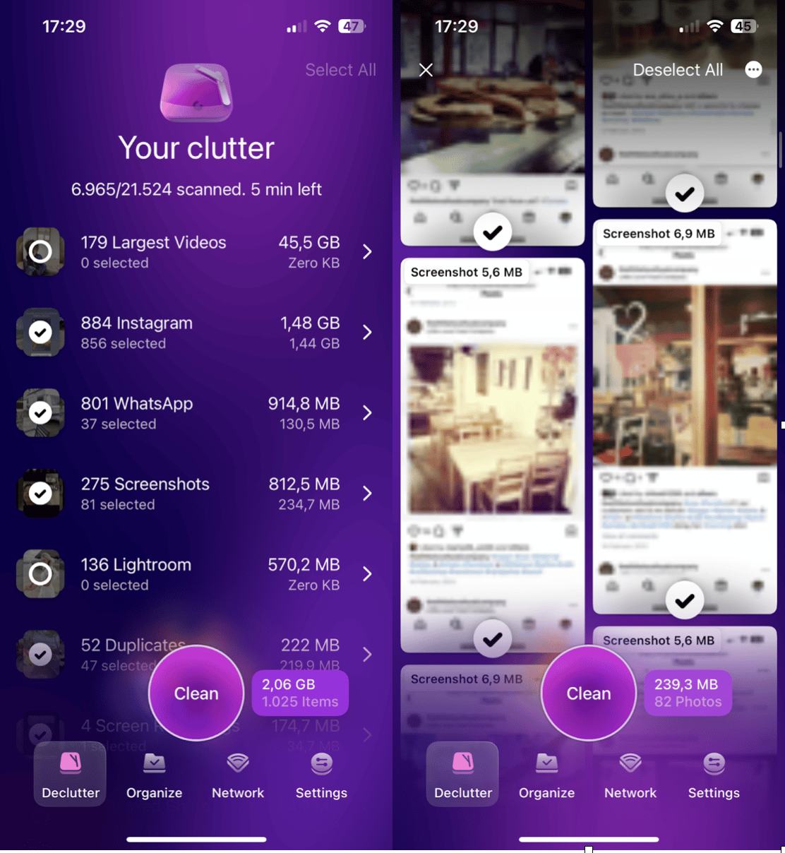 2. In the Declutter tab, check through the various categories.